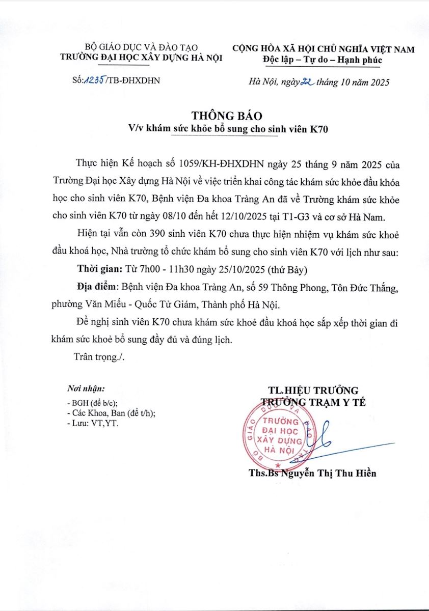 KHÁM SỨC KHỎE BỔ SUNG CHO SINH VIÊN K70