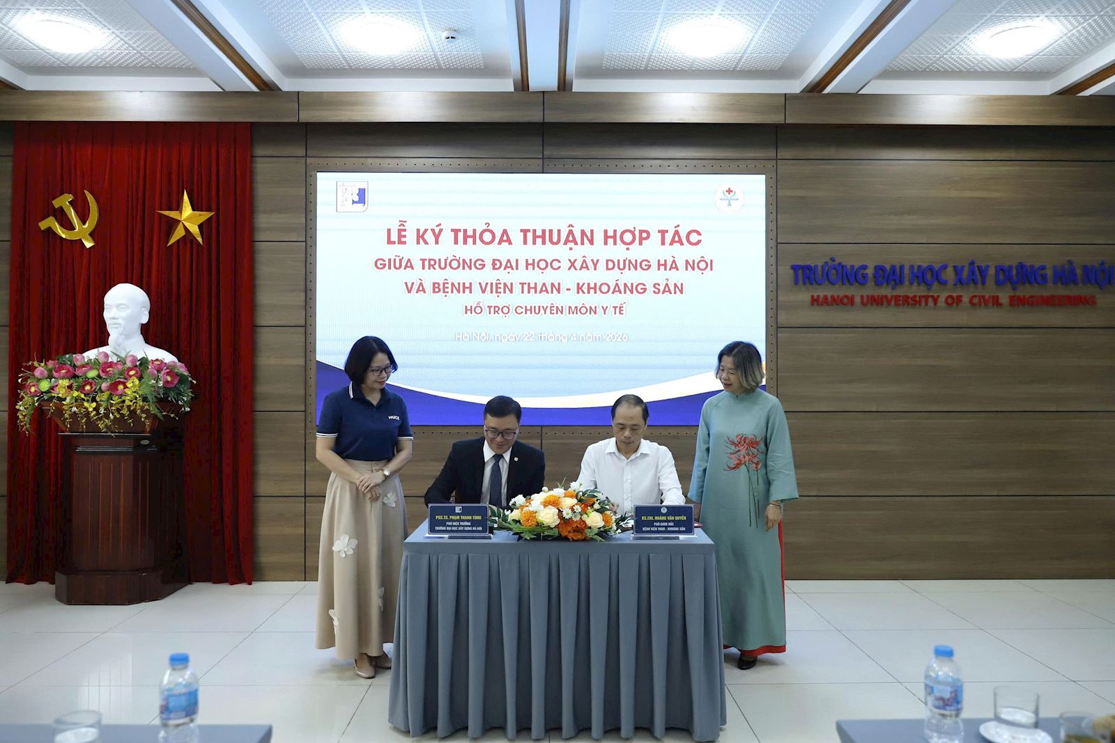Nhằm tăng cường công tác chăm sóc sức khỏe và nâng cao chất lượng hỗ trợ y tế cho cán bộ, giảng viên và sinh viên, Trường Đại học Xây dựng Hà Nội đã tổ chức Lễ ký kết thỏa thuận hợp tác với Bệnh viện Than - Khoáng sản (Địa chỉ: Ngõ 1, Phố Phan Đình Giót, Phường Phương Liệt, TP Hà Nội).